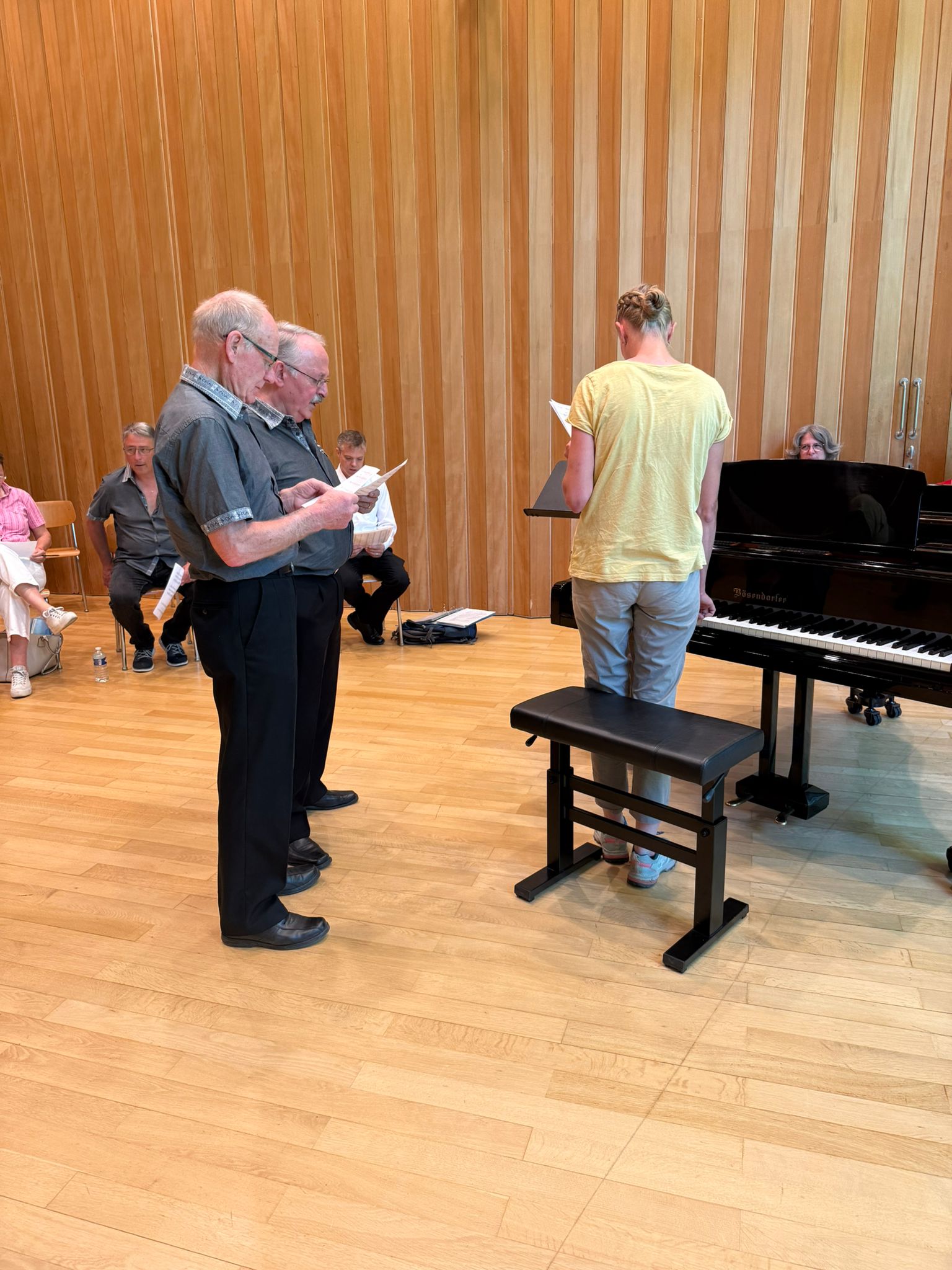 Die angehenden Dirigierenden erhielten dadurch Einblick in die Arbeit mit verschiedenen Niveaus, Stimmen und Gruppendynamiken. Auch wir durften von den vielen Inputs profitieren: neue Atemübungen, andere Interpretationen und frische Blickwinkel auf bekannte Lieder. Jeder nahm für sich etwas mit – sei es ein musikalischer Tipp oder einfach die Freude am gemeinsamen Weiterkommen.